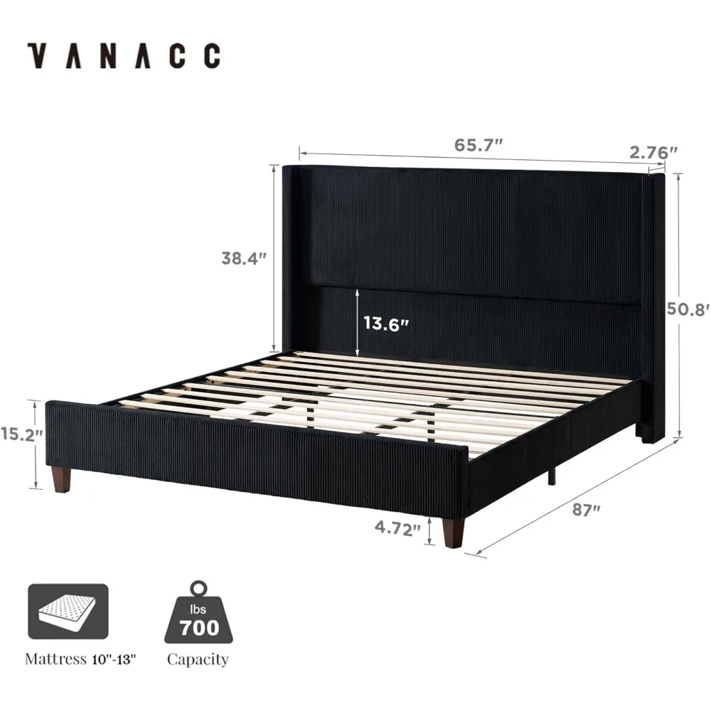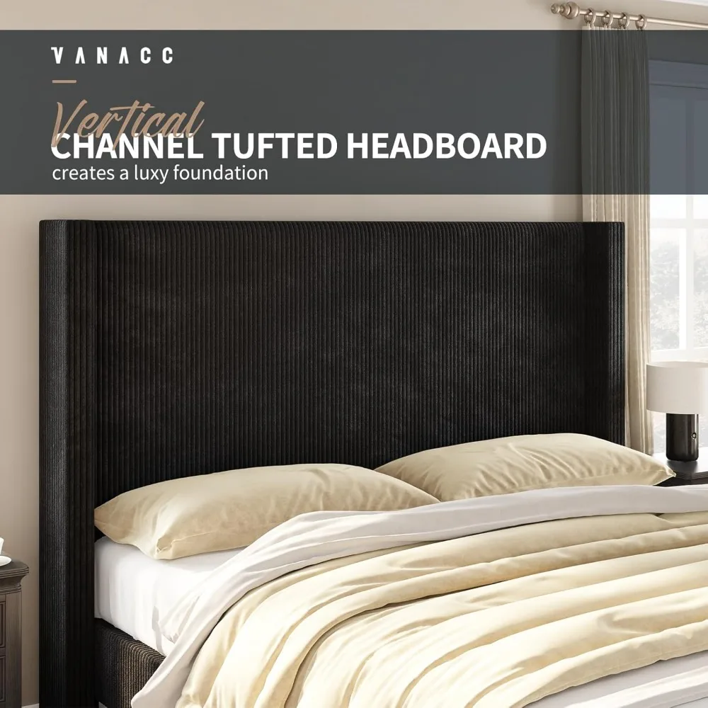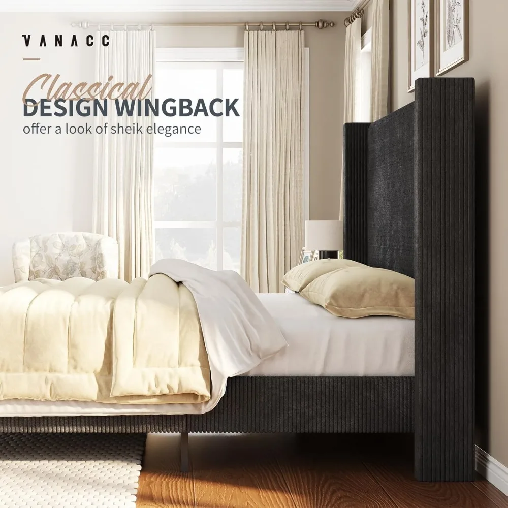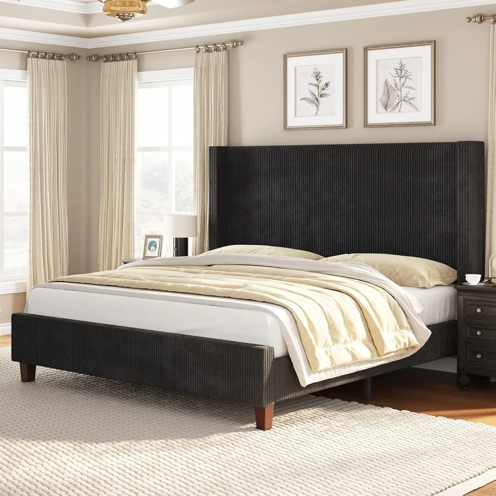 Queen Size Platform Bed Frame Corduroy Upholstered