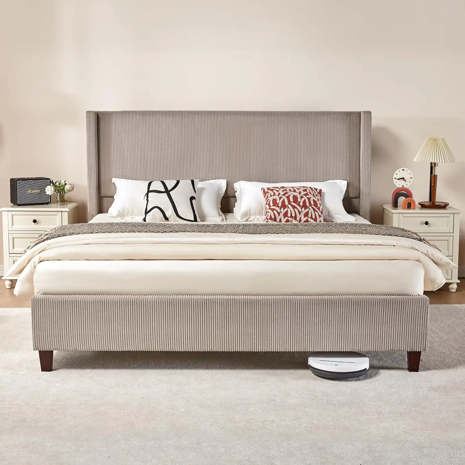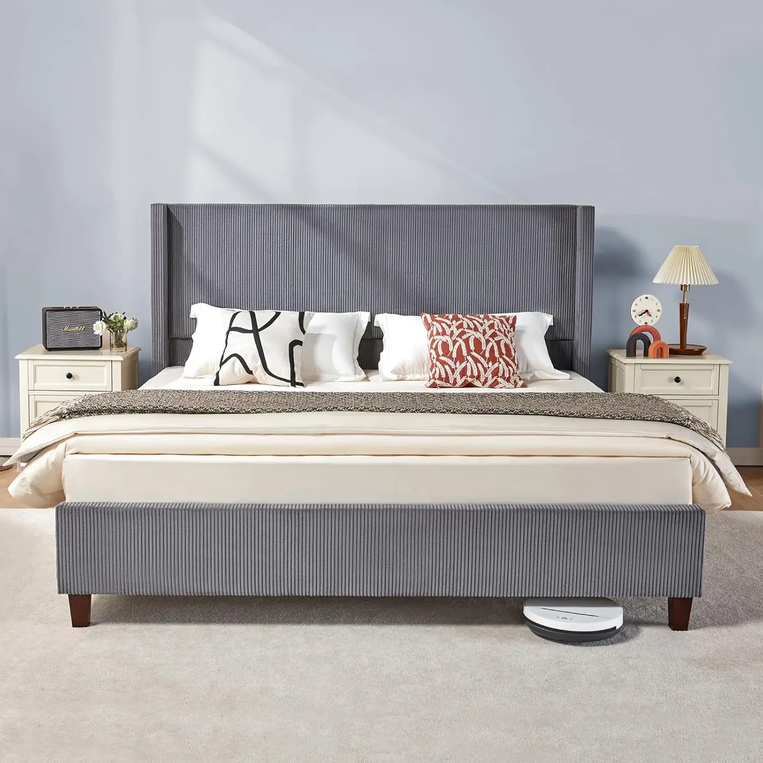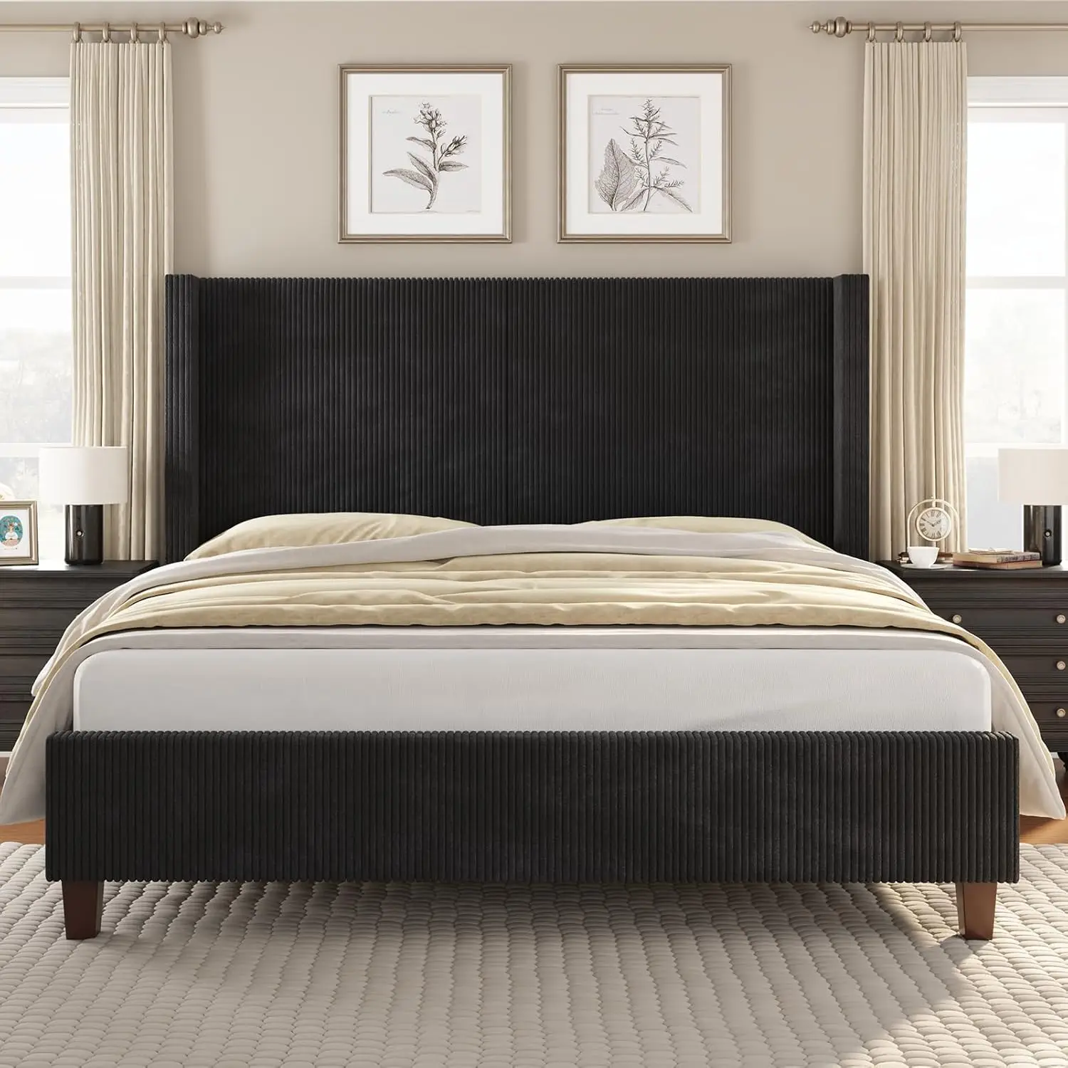 Queen Size Platform Bed Frame Corduroy Upholstered